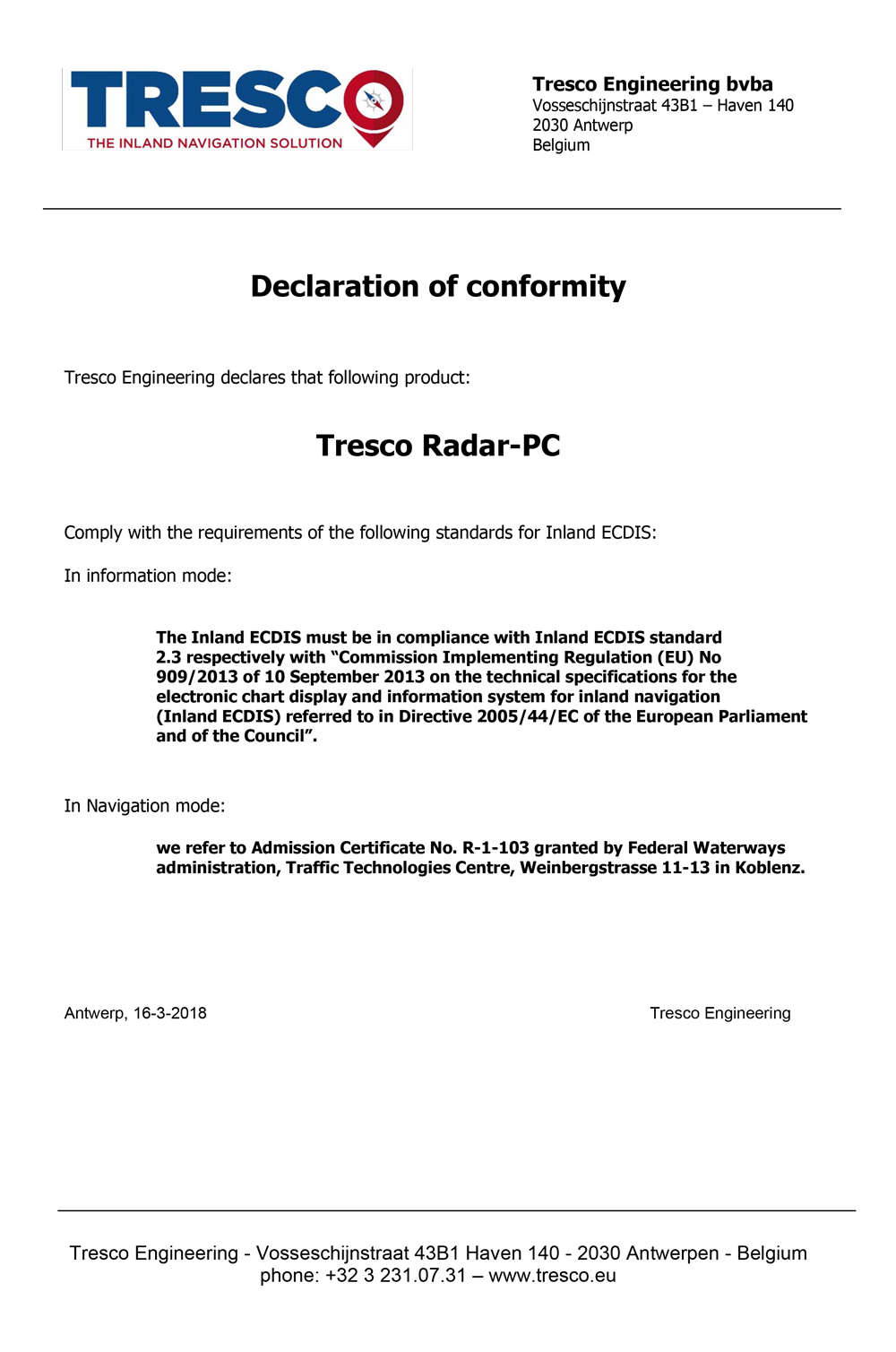 Certified simulator – Tresco radar link