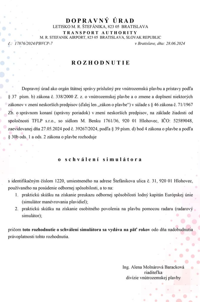 Approval of the certified simulator