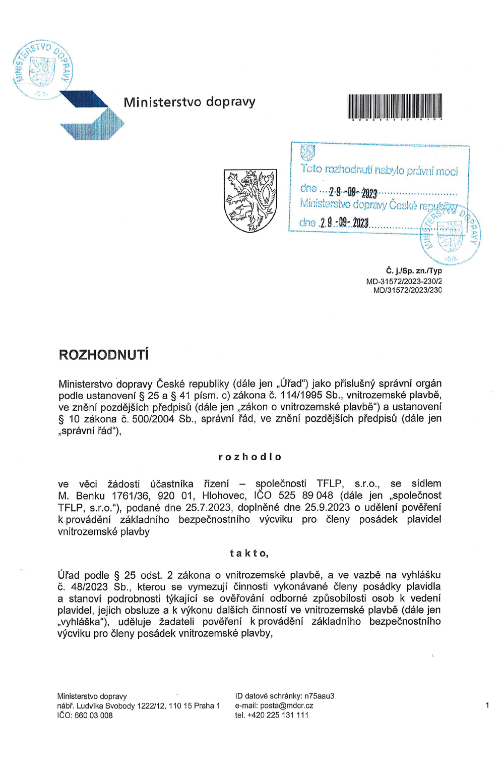 Basic safety training, CZ