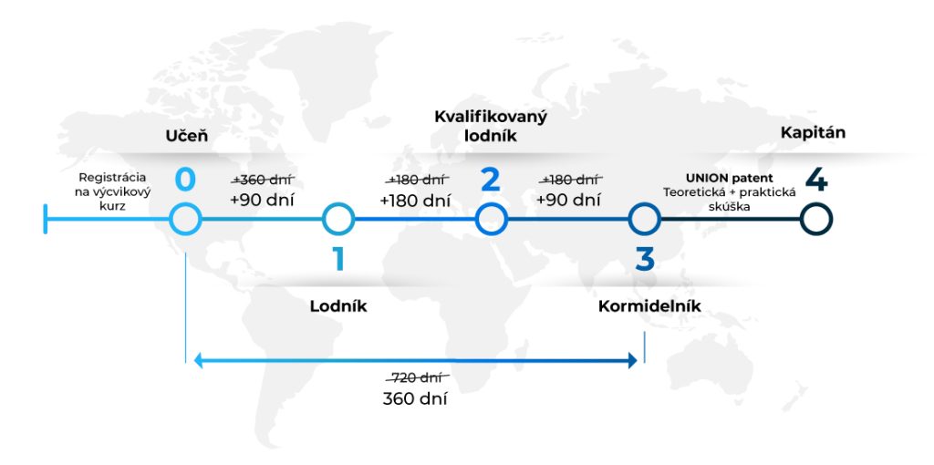 Po odplávaní 90 dní v rozmedzí 9 mesiacov a absolvovaní teoretického štúdia budete pripustení na lodnícku skúšku.